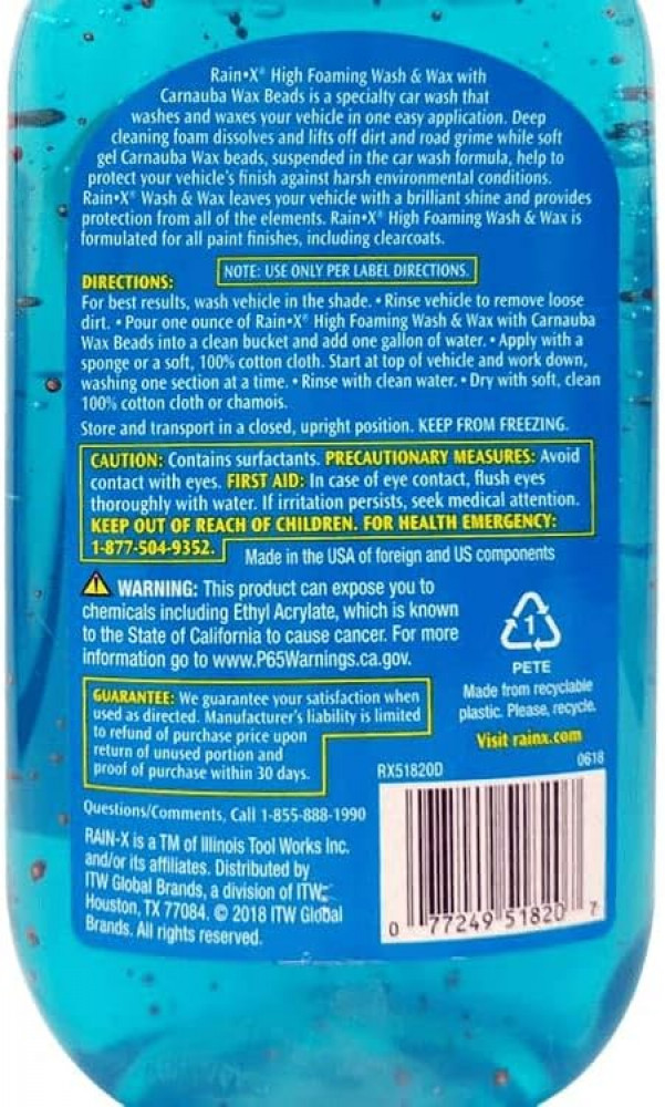 منظف رين إكس عالي الرغوة مع شمع الغسيل للسيارات واسفنجة تنظيف السيارة | Rain X High Foaming Car Wash And Wax Cleaning Foam & Car Cleaning Sponge