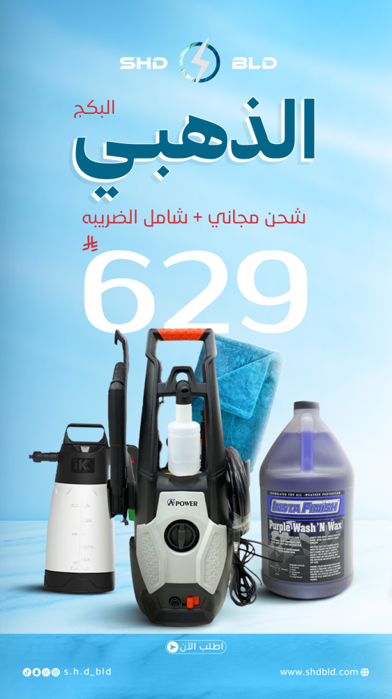 احصل على البكج الذهبي لغسيل السيارات الحل المثالي للحفاظ على سيارتك نظيفة ولامعة بأقل جهد ووقت. البكج مصمم خصيصًا لعشاق العناية بالسيارات ويجمع بين القوة والعملية مع أدوات ومنتجات عالية الجودة.