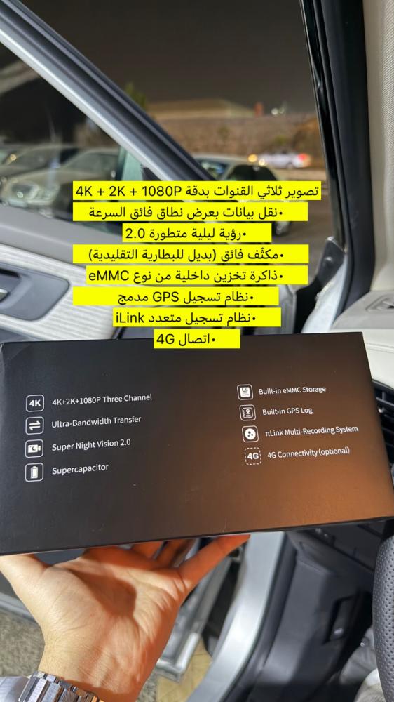 تصوير ثلاثي القنوات بدقة 4K + 2K + 1080Pنقل بيانات بعرض نطاق فائق السرعةرؤية ليلية متطورة 2.0مكثّف فائق (بديل للبطارية التقليدية)ذاكرة تخزين داخلية من نوع eMMCنظام تسجيل GPS مدمجنظام تسجيل متعدد iLinkاتصال 4G